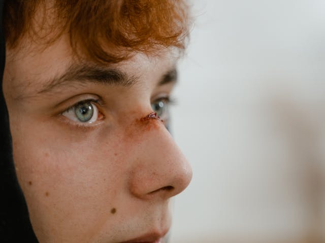 Photo by MART PRODUCTION: https://www.pexels.com/photo/person-with-wound-on-his-nose-7699397/