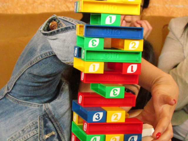Permainan satu ini sangat seru jika dimainkan bersama keluarga, lho. Teknis bermainnya, yakni setiap batang UNO disusun hingga membentuk menara tinggi.