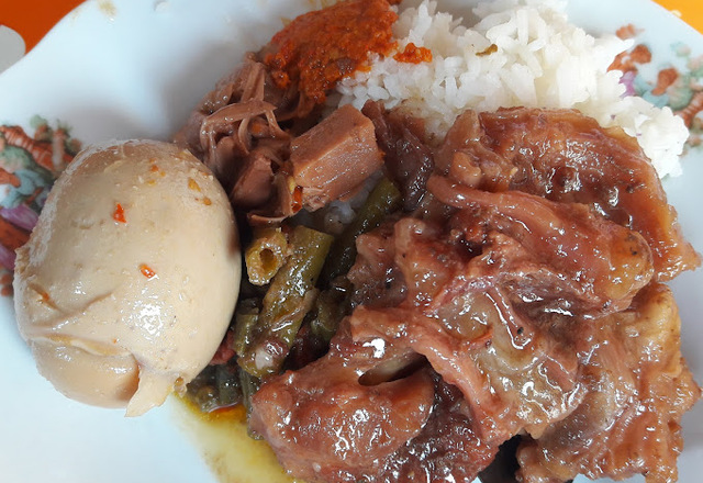 Kuliner legendaris di Semarang kerap diburu oleh para wisatawan, contohnya seperti Nasi Koyor Kota Lama yang sudah ada sejak tahun 1955. Bahkan, cita rasanya masih tetap sama sampai sekarang lho! Sesuai dengan namanya, hidangan ini berisi nasi putih yang disajikan dengan urat sapi/koyor, oseng kacang panjang, dan tambahan sambal.