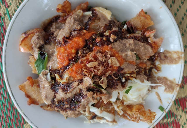 Sajian lezat berikutnya yang wajib banget untuk kamu santap adalah Tahu Gimbal Pak Haji Edy yang sudah ada sejak tahun 1972 lho! Bagi yang sudah familier, pastinya tahu kalau makanan ini berisi lontong, telur goreng, kol, dan juga gimbal yang disiram dengan kuah kacang.