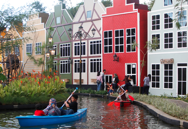 Selain menikmati pemandangan dan berfoto, Devoyage juga menawarkan berbagai wahana dan aktivitas menarik seperti kano di kanal-kanal kecil yang mengelilingi area wisata, serta taman bermain untuk anak-anak.